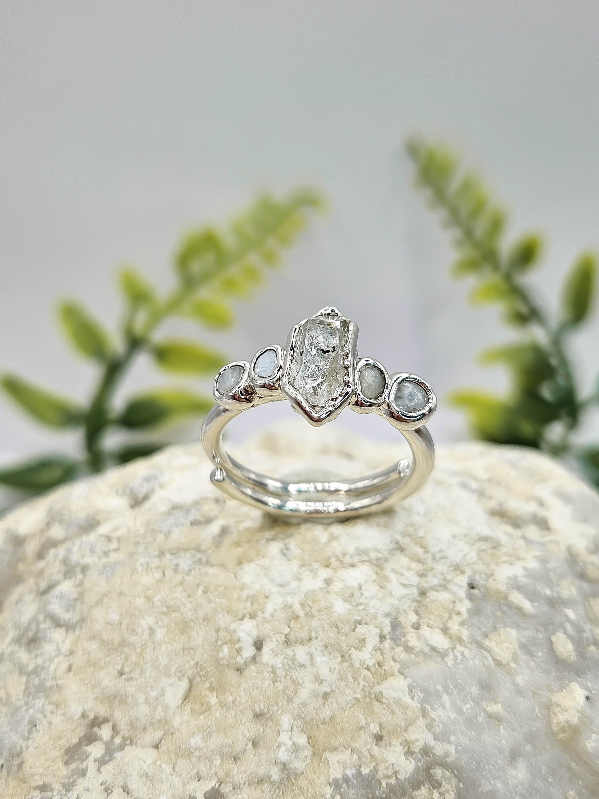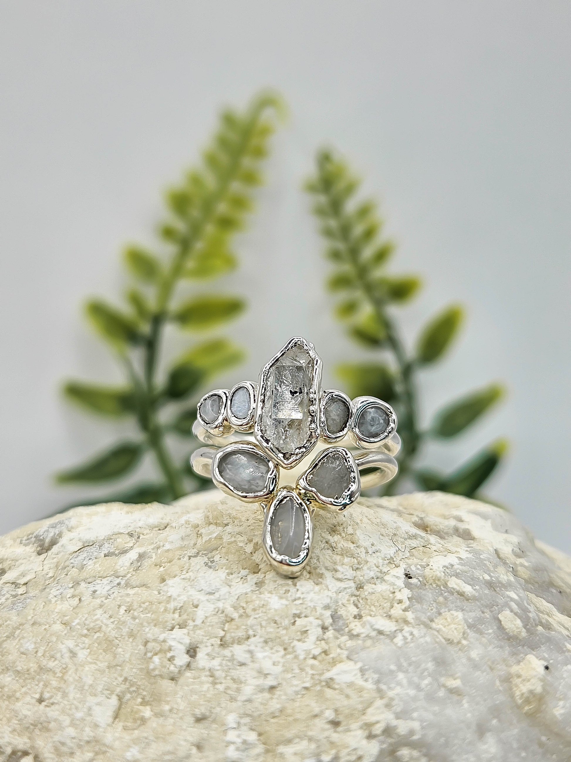 ♡ Description : Ce duo de bague en quartz et puces de lune s'harmonise avec les colliers personnalisables ou les boucles d'oreilles personnalisables pour une parure 100% Toi.