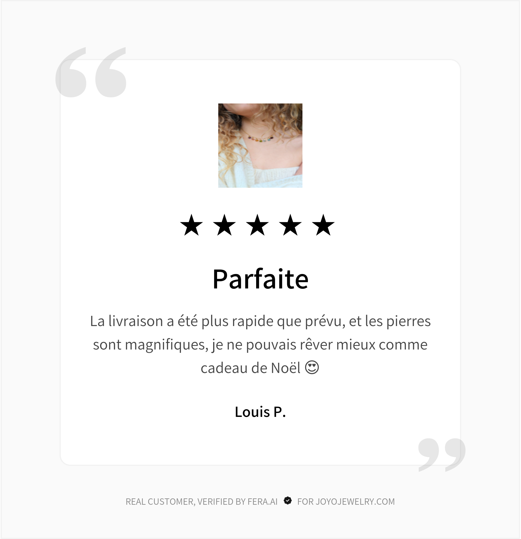 En cas de produit endommagé à la réception, merci de nous écrire sous 3 jours à l’adresse contact@joyojewelry.com, avec une photo à l'appui. Passé ce délai, aucune réclamation ne sera acceptée.