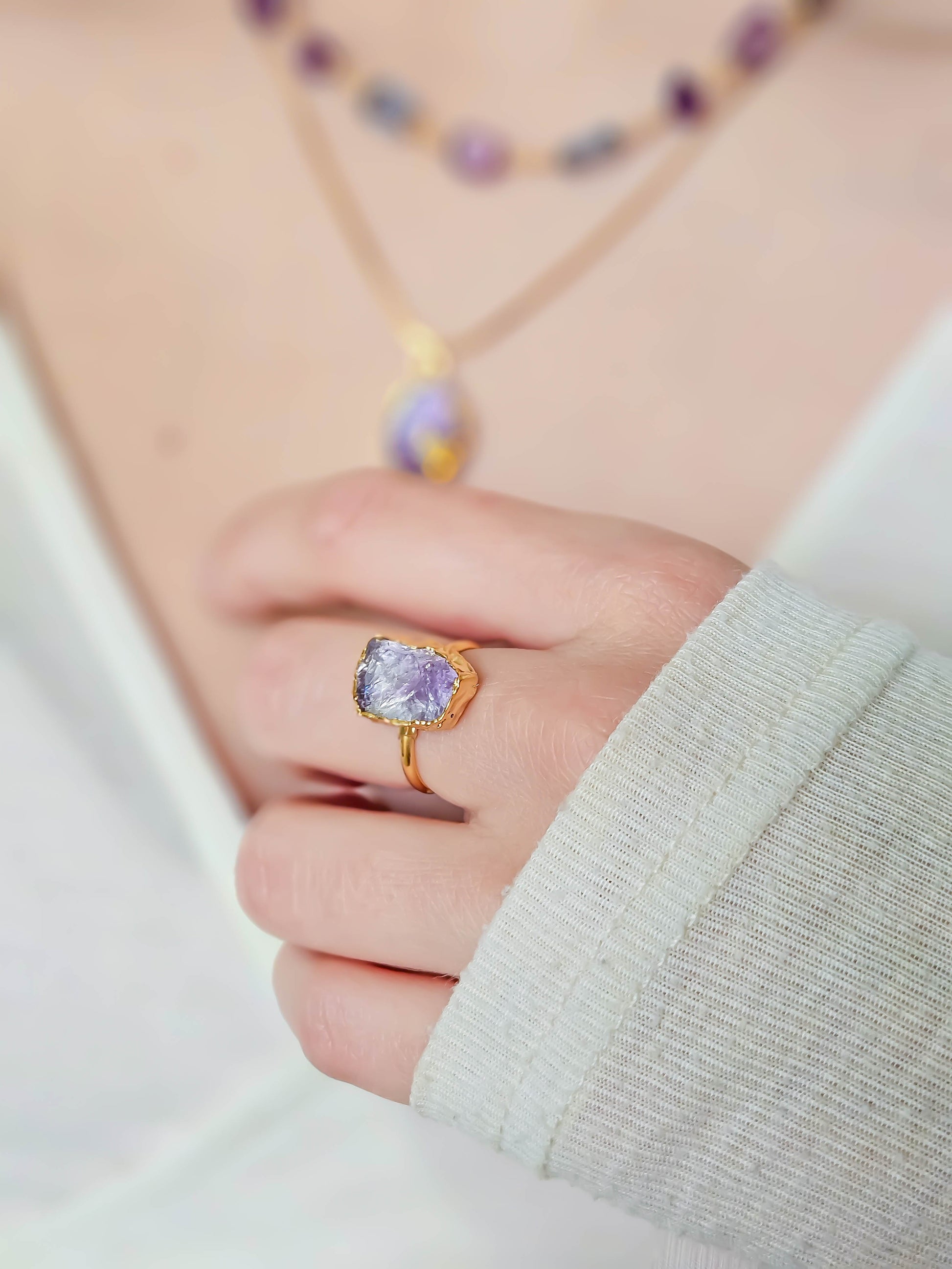 ✨ Ce collier est orné d’une magnifique améthyste brute, aux textures naturelles et uniques.