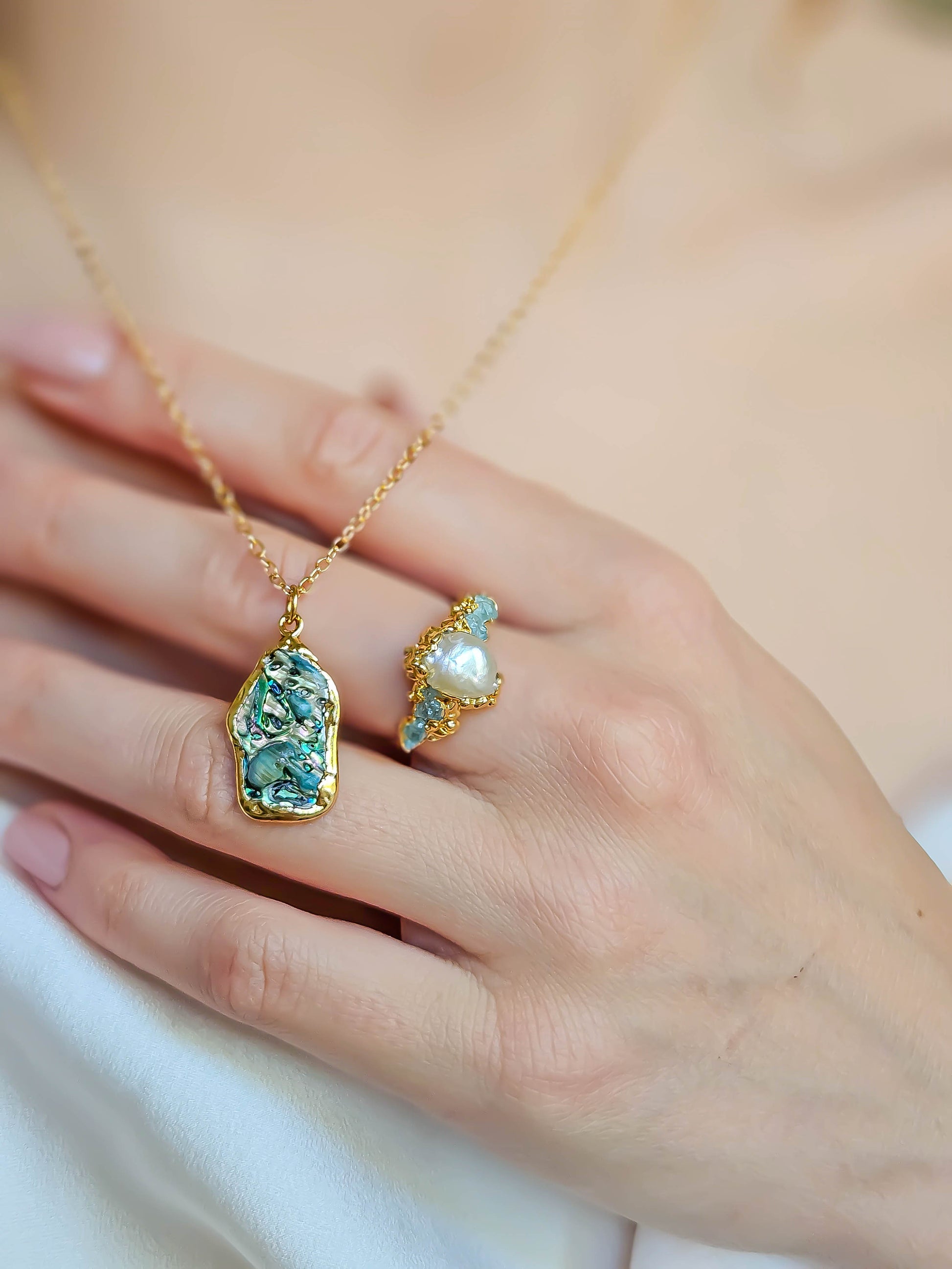 Un bijou aux reflets changeants, doux comme une vague, profond comme un rêve d’eau.