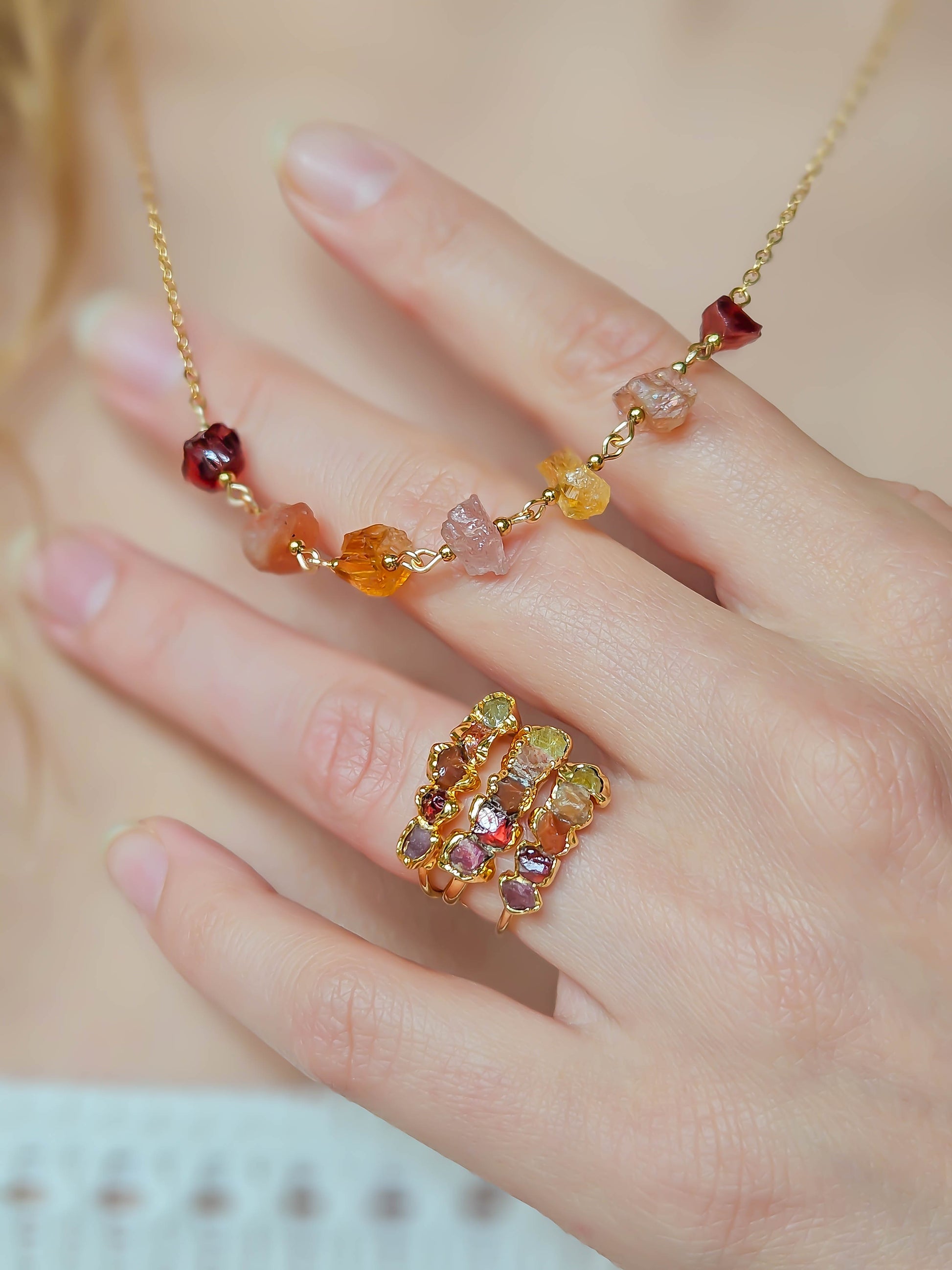 Chaque bijou est façonné à la main dans mon atelier à Paris, grâce à la technique de l’électrolyse, qui sublime la beauté brute des pierres naturelles.