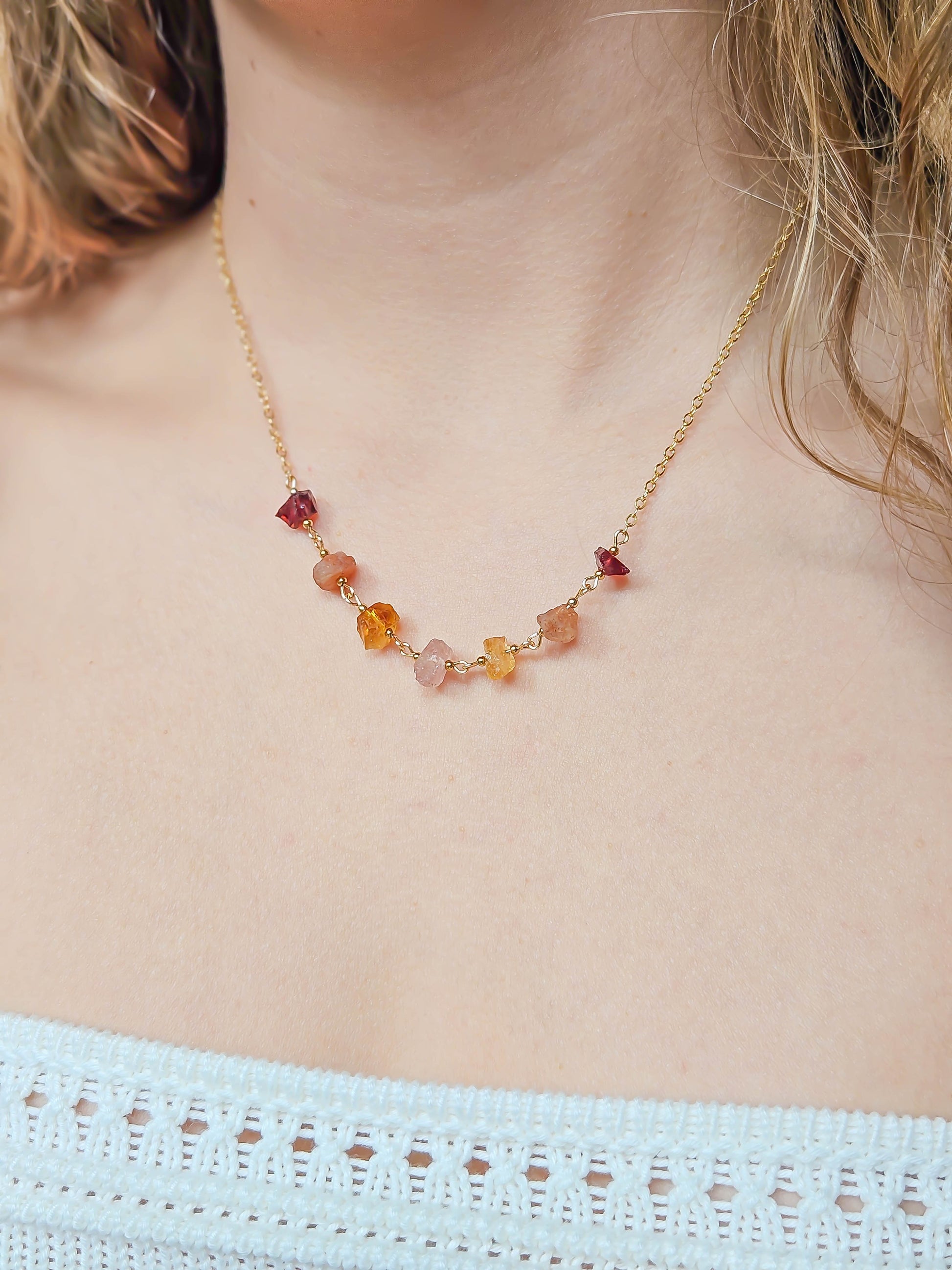 - Grenat rouge, pierre de soleil, Citrine, quartz fraise