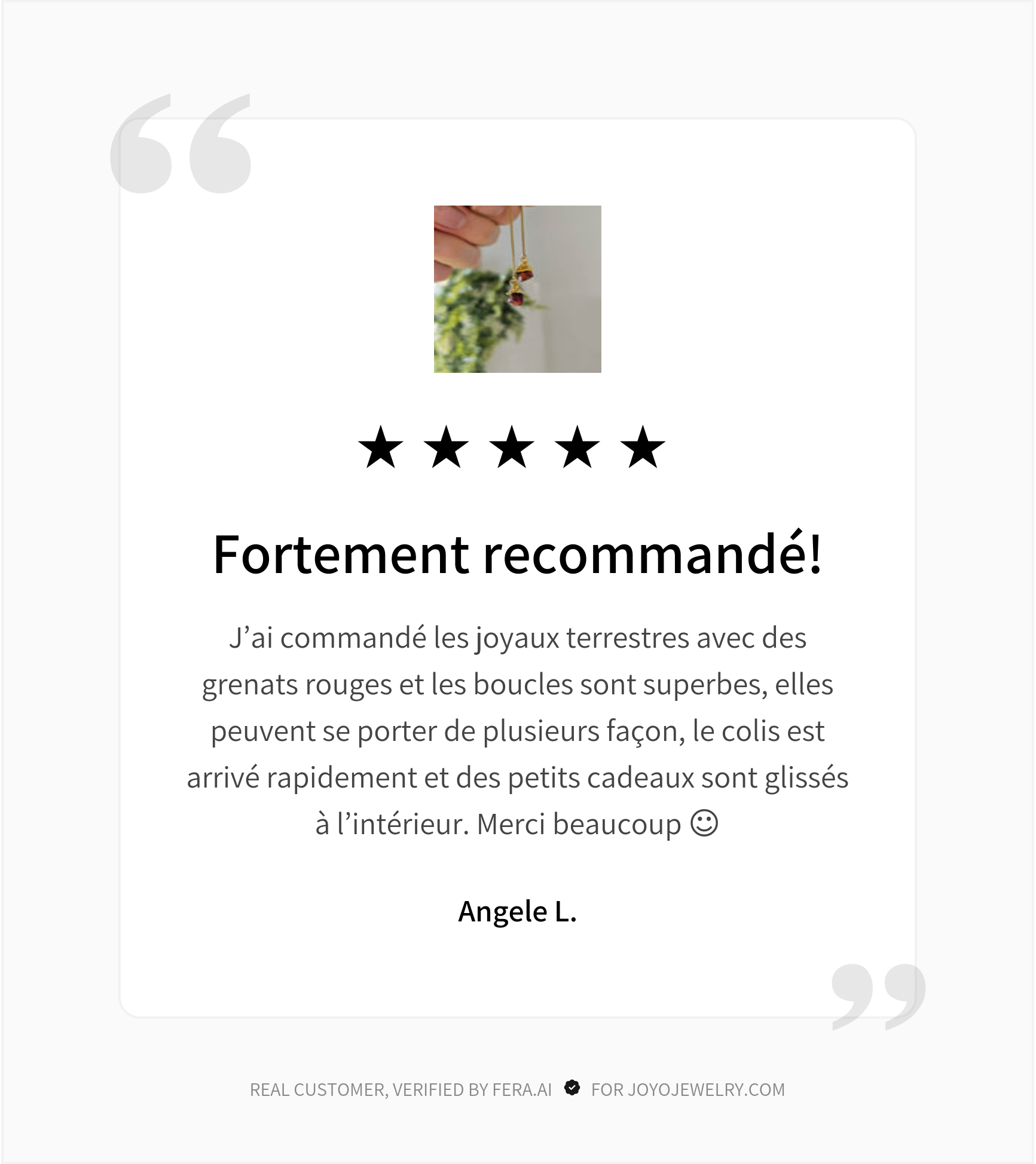En cas de produit endommagé à la réception, merci de nous écrire sous 3 jours à l’adresse contact@joyojewelry.com, avec une photo à l'appui. Passé ce délai, aucune réclamation ne sera acceptée.