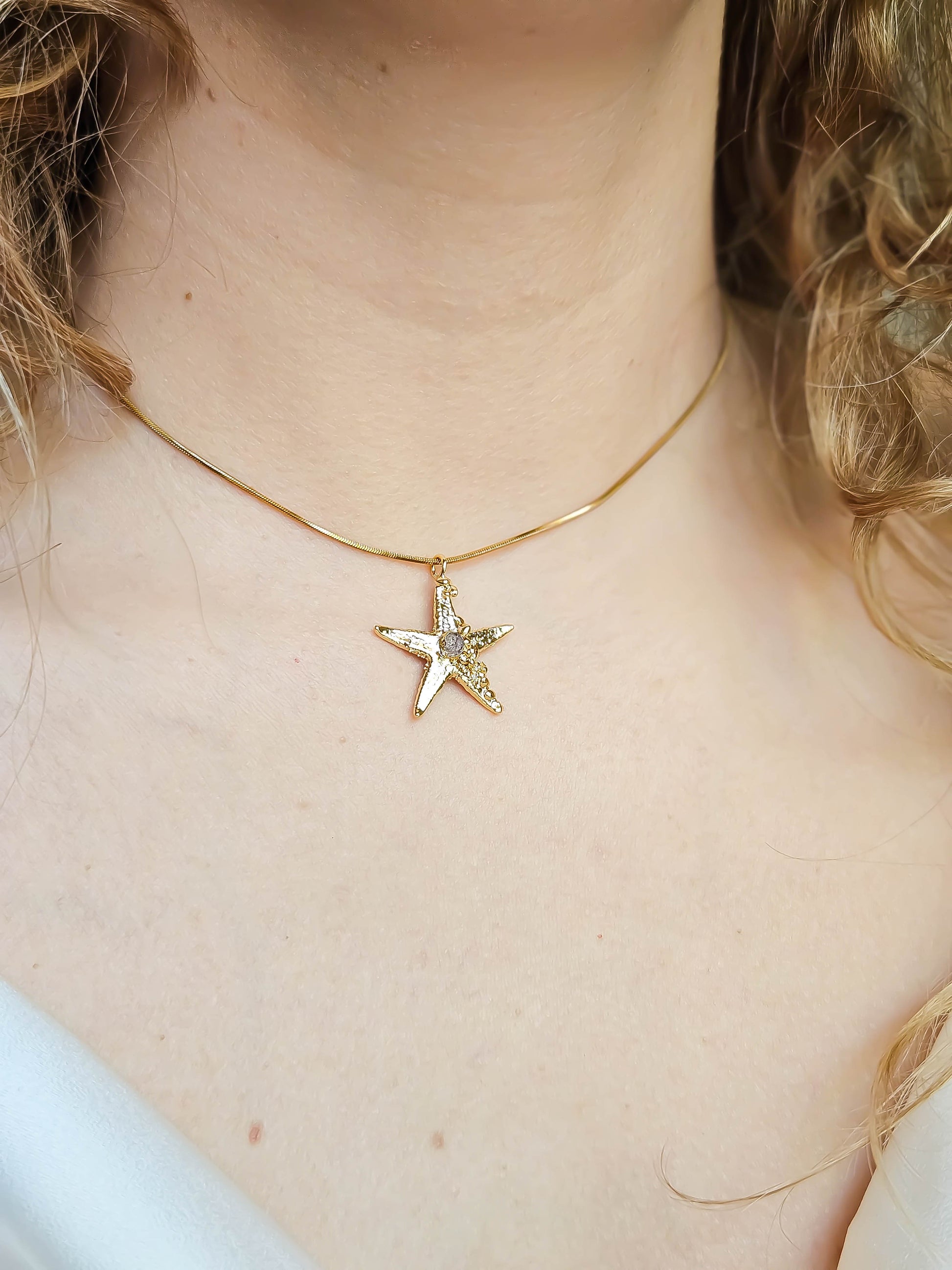 🔹 Pierres : Vraie Etoile de mer métallisée, Pépite de quartz fraise incrustée