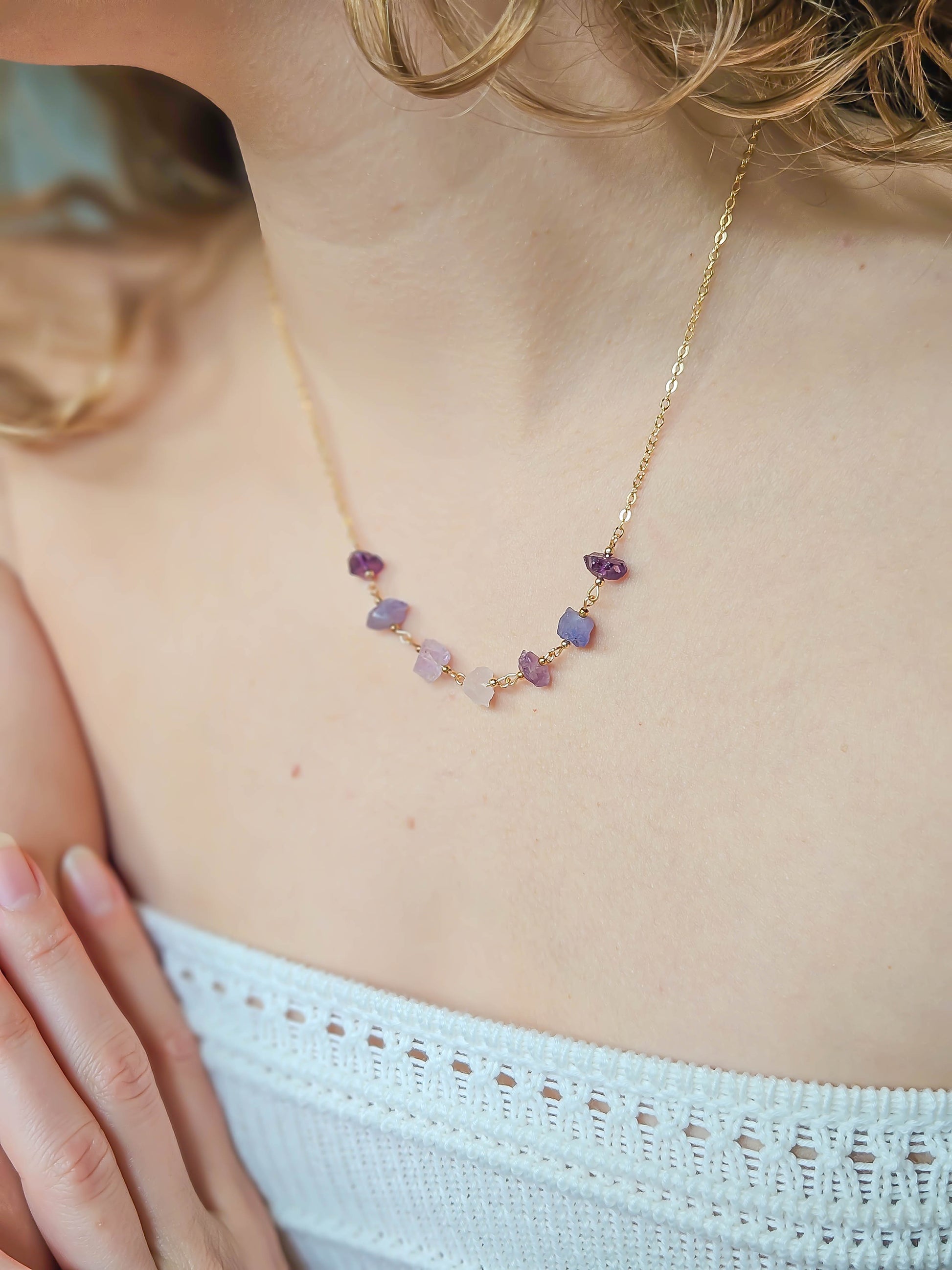 - Améthyste foncé, Tanzanite, améthyste clair, Quartz rose